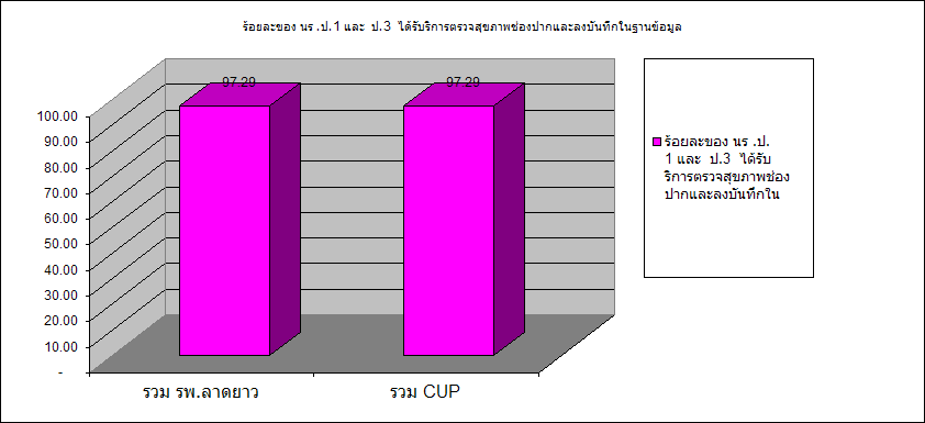 | ตัวชี้วัดตัวที่ 20 | ร้อยละของ นร .ป.1 และ ป.3 ได้รับริการตรวจสุขภาพช่องปากและลงบันทึกในฐานข้อมูล | |||||||||||||||